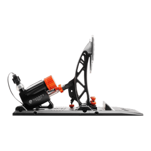 Asetek Invicta™ T.H.O.R.P.™ II is an updated version of the legendary Invicta pedals, offering even greater realism and flexibility. The new T.H.O.R.P.™ II hydraulic system allows for up to 40% longer pedal travel and less force to reach the second phase, providing an even more precise and natural braking feel.