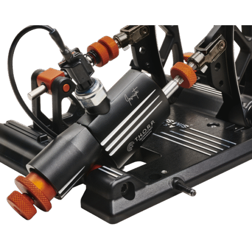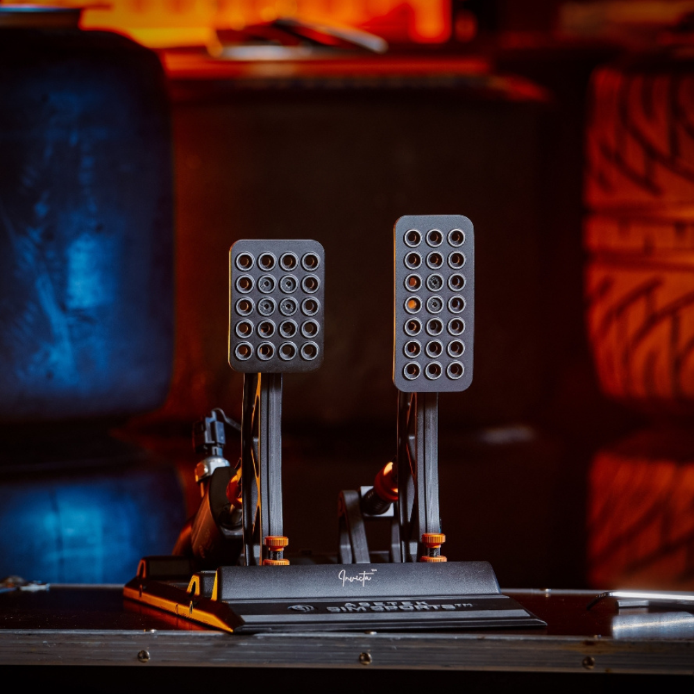 Asetek Invicta™ pedals are top-of-the-line pedals designed for sim racing enthusiasts, providing a realistic racing car feel. Using T.H.O.R.P.™ (Twin Hydraulic Opposing Rapid Pistons) technology, the brake pedal provides two-phase resistance: